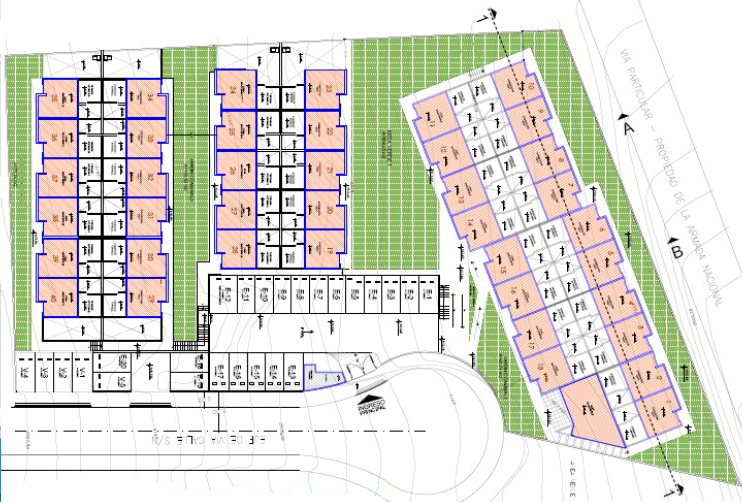 Ubicación: Quito, Pichincha Lote: 4.000 m2 Proyecto: 40 viviendas Casa Tipo: 67 m2 (2pisos)